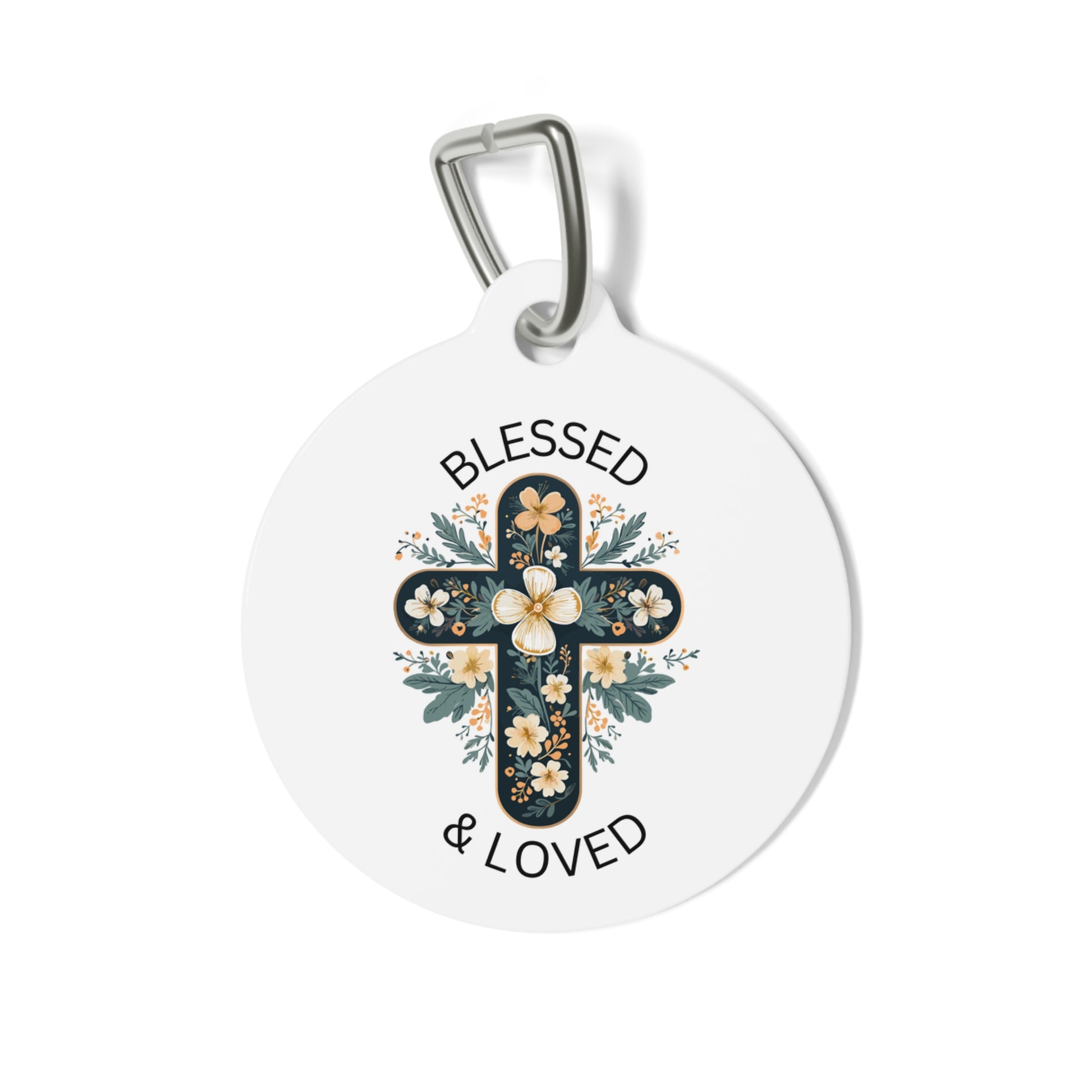 Personalized Pet Tag with the design 'Blessed & Loved', giving a sense of warmth and love. Perfect for pet owners looking to keep their furry friends safe and stylish. Ideal for pet birthdays, holidays, or just everyday wear.